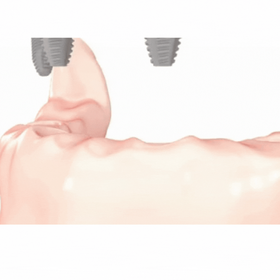 Indicado para pacientes com pouca estrutura óssea, fixado nos ossos zigomáticos para máxima sustentação.